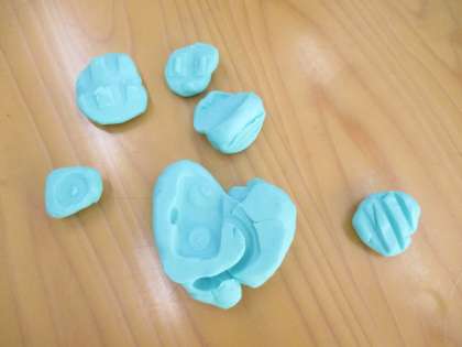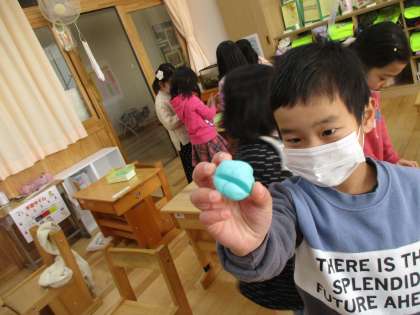 粘土を使って、でこぼこを見つけ、面白い形になると見せ合いっこをしていました。