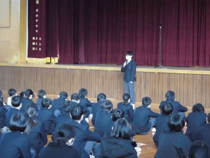 今日は3学期始業式を行いました。生徒たちは充実した冬休みを過ごしていたのか、すっきりとした様子で式に参加していました。