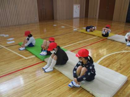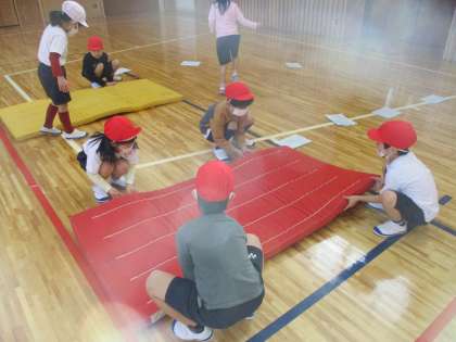 子供達はマットあそびマスターになるために、たくさんの技に挑戦しています。