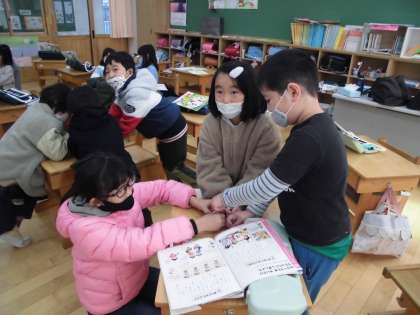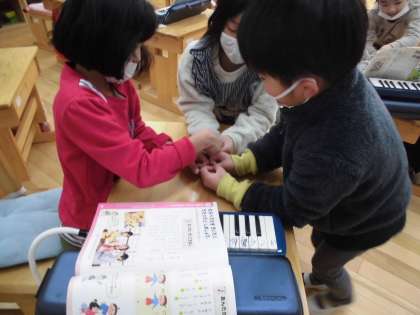 音楽科の学習で、「ずいずいずっころばし」「あんたがたどこさ」など日本に昔からある遊び歌を楽しみました。また国語科の学習では、「はんたいのいみのことば」を友達と協力してたくさん見つけるゲームを楽しみました。3学期も、みんなで力を合わせていろいろなことに挑戦します。