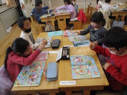 休み時間になったら、すごろくを始める1年生です。