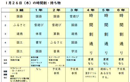 前期課程 1月26日の予定をお知らせいたします。