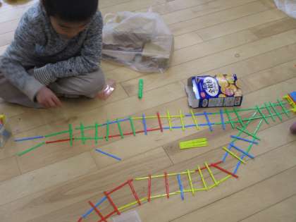 子ども達は、はじめは一人で活動していたのですが、友達に「合体しよう。」と声をかけて最終的に一つの町ができたグループもありました。