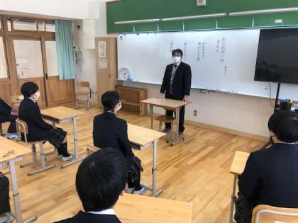 9日5限、明日からの私立高校入試に臨む9年生を対象にして、事前会を行いました。初めに、校長先生から「緊張することがあるかもしれませんが、これまでの自分の努力を信じてテストに取り組んでください。」という激励の言葉をいただきました。受験生のみなさん、明日からの入試に全力でがんばってください!