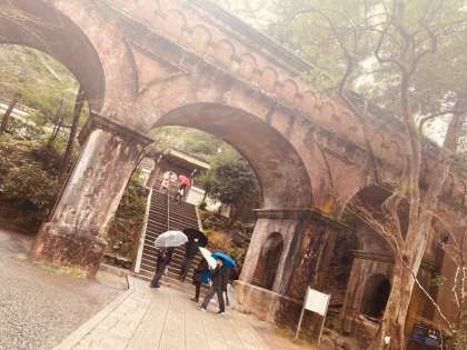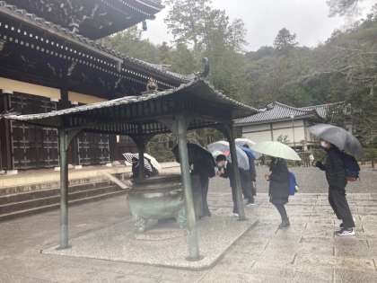 各班に分かれて研修をしています。雨の中ですが元気に活動しています。この後、京セラ美術館で鑑賞をします。