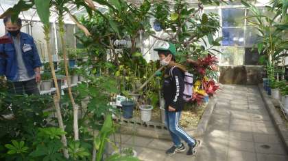 自分で「行きたい」と言っていたチョウの家には入ったものの、「オオゴマダラ」などが飛んでくると「キャー」と言って逃げていました。でも、サナギや幼虫など動かないものには興味があり、じっくりと見入っていました。