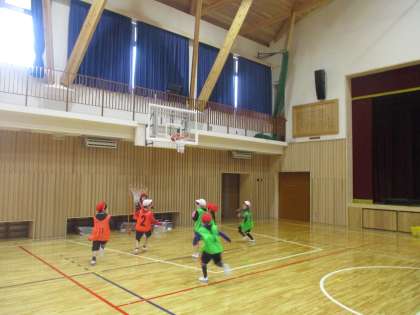 味方とボールをパスしながらゴールに近づき、得点を競うゲームで子ども達は大盛り上がりです。