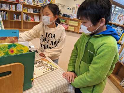 図書館探検をしている間に、借りたい本を見つけた様子で、オリエンテーリング後にさっそくみんな本を借りていました。
