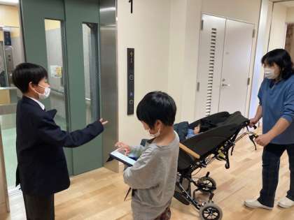 後期課程3組の子がリーダーとなって、学校探検をしました。広くてきれいな校舎に、子どもたちは大喜びでした。その後、気に入った場所を発表しました。ちなみに、一番人気は「家庭科室」でした。