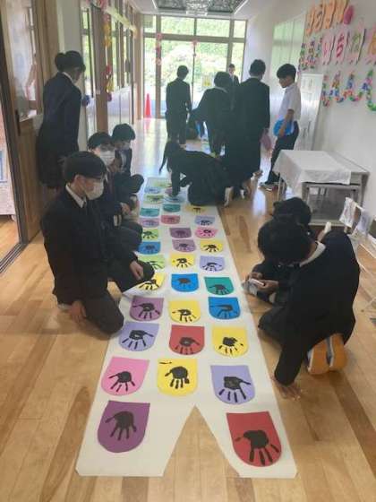 6年生との交流で制作したこいのぼりが完成しました。