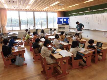 漢字の音と訓について、タブレットを使って学習をしています。なぜ、漢字には「音」と「訓」の2通りの読み方があるかについても考えました。これから漢字を学習する時は、「音」「訓」の読み方の違いにも気をつけてほしいと思います。