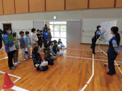 8日(月)に、東体育館で自転車安全教室がありました。警察署の方にお越しいただき、安全な自転車の乗り方について教えていただきました。「自転車は車両である」ことや「歩道では歩行者が優先である」ことなど、たくさんのことを学ぶことができました。その後、学んだことを頭に入れて、実際に自転車に乗って、コースを走りました。これからも交通ルールを守り、今回学習したことをしっかり実践してほしいと思います。