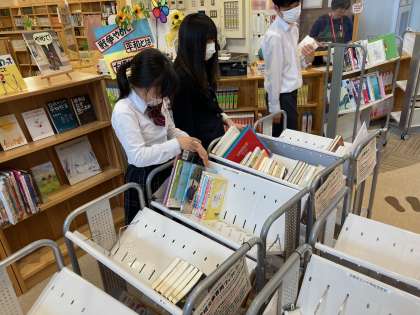 文化図書委員会では、1stステージの生徒に向けた読み聞かせを企画しています。それに向けて、絵本を選んだり読む練習をしたりしました。また、学級文庫の選書も行いました。どちらの活動も、どんな本だと喜んでもらえるかを真剣に考えて取り組んでいました。