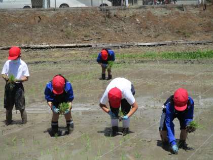地域の方やJAの方のご協力もいただき、経験のある生徒も初めての生徒も楽しく田植えができました。
