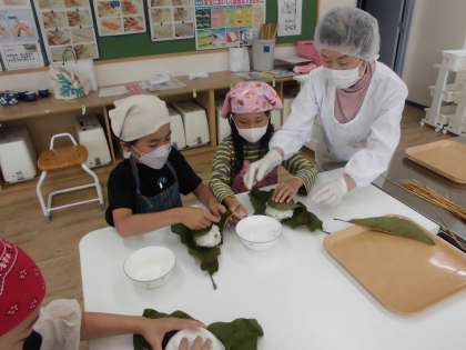 豆ご飯と朴葉の香りで季節を楽しめた活動になりました。