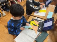 たし算とひき算のひっ算の学習をしています。十の位が「0」の時は、「0」を書かないことを確認しました。先生のノートをお手本としながら、ノートの書き方にも気をつけて、見やすいノートを作ることができました。
