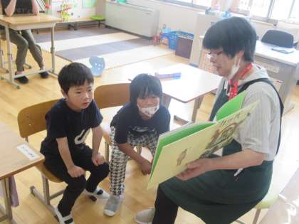 学校司書の先生から、本の読み聞かせがありました。子どもたちは、食い入るようにお話を聞いていました。また、次回の読み聞かせが待ち遠しいです。
