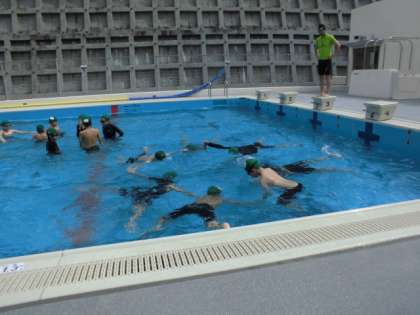 けのびバタ足やクロール、平泳ぎをバディを組んで練習しています。