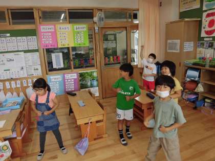 クラスを盛り上げるために、係活動も頑張っています。朝の会終了後、ダンス係が前に立って、ダンスをしていました。子どもたちは、朝から元気いっぱいです。