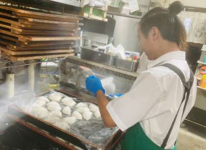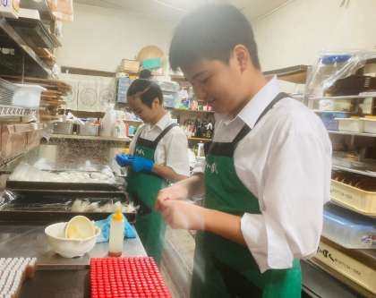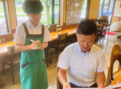 レストランでは、配膳や商品の袋詰め、洗い物などたくさんの仕事があります。8年生3人も頑張って働いていました。