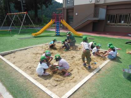 29日(木)に図画工作科の「すなやつちと なかよし」の学習をしました。この学習では、すなをさわってみるとどんな感じがするか。体全体でたしかめながら いろりろな形をつくりました。