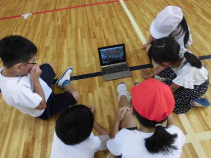 今日は、体育祭に向けてダンスの練習をしました。色ごとに並んで踊ったり、班ごとに自分たちの姿を動画に撮ったりしながら踊りました。子どもたちは、動画で踊る姿を確認することで、より上手に踊るためにはどうすればよいかを考えていました。