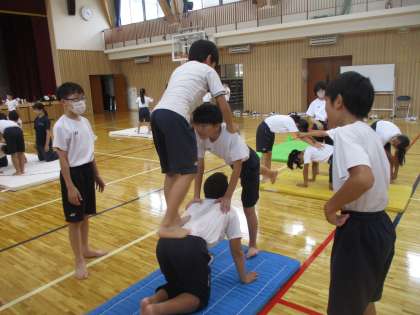 「右足から乗るよ。」「せえの!」など相手を思い、言葉をかけ合う姿がたくさん見られます。