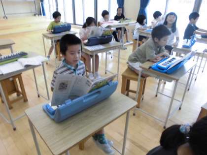音楽の時間に、鍵盤ハーモニカの練習をしています。今回は、新しい曲に挑戦しました。また、歌も元気いっぱいに歌う姿が見られました。