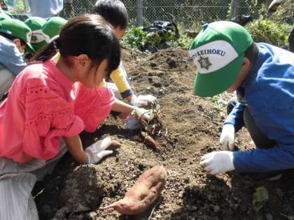 京北ふるさと未来科で育てていたサツマイモを収穫しました。