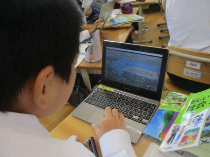 自動車には約3万個も部品があるのにどのように組立て、ミスなく早く作られているのかという学習問題を解決するために「部品グループ」と「工程グループ」に分かれて調べ学習をしています。
