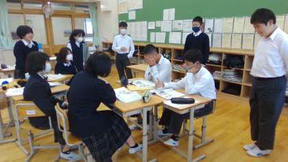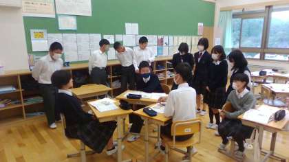3人グループになって、「由紀さん」「香さん」「クラスメイト」の役に分かれて演じてみました。悲しみに寄り添うグループもあれば、片付けをしなかった由紀さんが良くなかったと諭すグループもありました。『何が一番相手のためになるのか』に重点を置いて考えていたようです。
