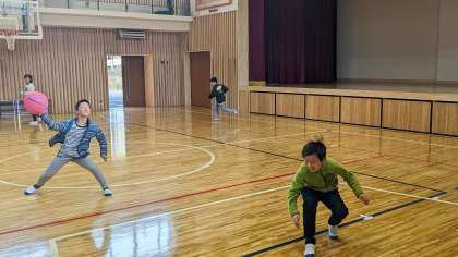 ボール当ておにごっこをしました。