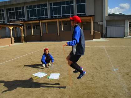 なわとびは、ペアで数えたり教え合ったりしながらたくさんとんでいます。
