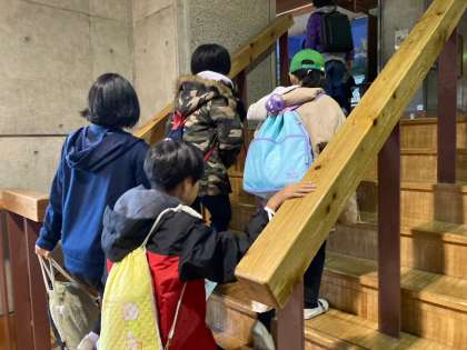 山の家の館内をグループで散策しています。
