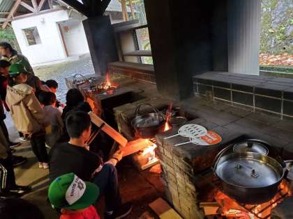 ただいま調理中。 お米の鍋が吹いてきました。