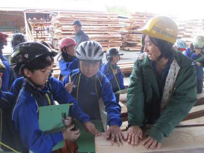 子ども達は森林組合の方の話をたくさんメモを取りながら聞いていました。