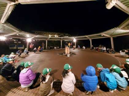 キャンプファイヤーが始まりました。火の神「ハナーセ」が降臨し、炎を私たちに分けてくださいました。