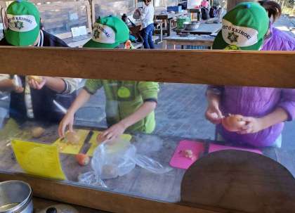 米を洗って野菜を切って煮込んでいきます。かまども準備OKです♪