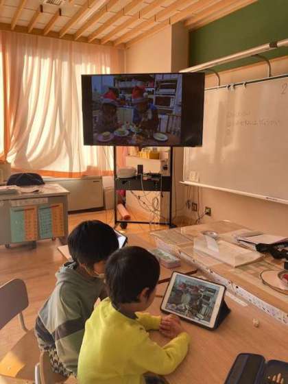 前期課程3組では、長期の休み明けには、絵日記アプリを使ってそれぞれのお休みにしていたことを発表することが定番になってきました。約2週間程度の冬休みでしたが、様々な経験をしたことを嬉しそうに話していました。