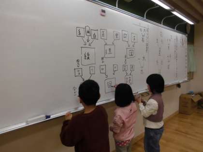 国語の時間に、漢字の学習をしました。2つの漢字を組み合わせて、漢字や文を作りました。意欲的にたくさんの漢字を作っていました。