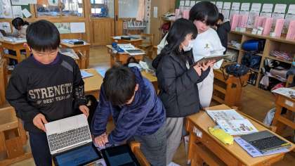外国語科「Unit 8 This is my favorite place.」の学習では、校内地図を使って道案内をし、どこが自分のお気に入りの場所なのかを当ててもらうゲームをしました。学習した言葉を一生懸命お友だちに伝えていました。
