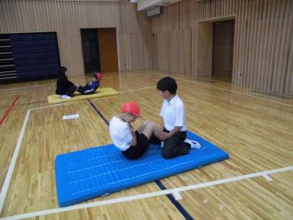 体育館で、体力テストを実施しました。体力テストは、自分の体力の現状を把握し、体力向上を目指すことをねらいとしています。今日は、長座体前屈・上体おこし・反復横跳び・握力・立ち幅跳びの5種目を行いました。子どもたちは記録向上を目指して、一生懸命に取り組むことができました。残り20mシャトルラン・ソフトボール投げを実施し、今後は結果をもとに子どもたちの体力向上や、生涯スポーツにつなげていきたいと思います。