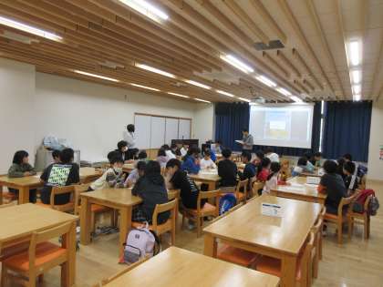 少し緊張気味の4年生に、7年生が優しく声をかけています。