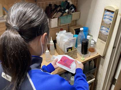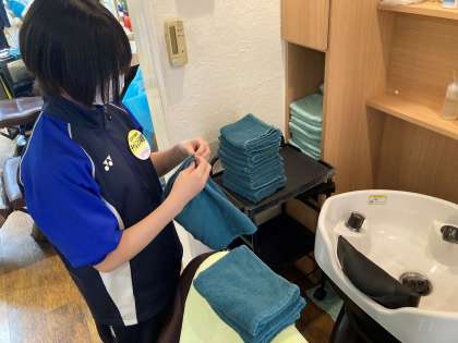 タオルをきれいに畳んだり、パーマ液を作ったり貴重な体験をしています。