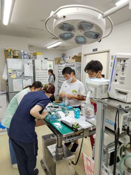右京動物病院での体験の様子です。