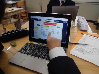 「ゆで野菜サラダ」を作る計画を立てました。材料ごとに調理の手順などをグループで話し合って確認し、ロイロノートにまとめました。調理実習の時には、計画通りに進めてくれることを期待しています。