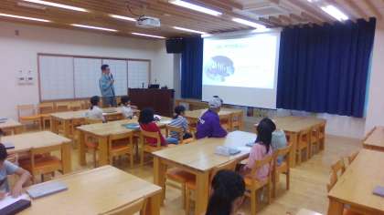 5月30日(木)京北ふるさと未来科の学習で、「上桂川の生物とアユ教室」というテーマで京都市産業観光局の方にお話ししていただきました。まず、上桂川にはどのような生物がいるのかを写真や動画を使い説明してくださいました。そして、国土交通省が出している水質階級の指標や生息している生物の種類のなどから上桂川が一般的にきれいな河川なのか教えていただきました。次に、アユは10月ごろから川を下りその後、小石のある底で卵を産みます。生まれたアユの子どもは、川の流れに乗って海まで行きそこで海の豊富なプランクトンを食べて成長し川を上がることも教えてもらいました。最後は、おまけで魚にも人間のような思いやりがあるのかを話してくださいました。