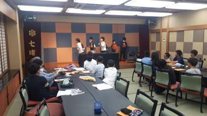 レクリエーションを行っています。各班からの出し物にみんな楽しんでいます。