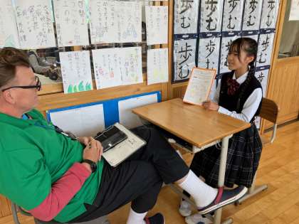 自己紹介や日本の行事をALTに伝えようと頑張っていました。
