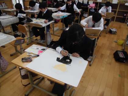 下がきが終わり、絵の具で色を塗る活動に入っています。水の量や絵の具の量、塗り方などを工夫して、丁寧に色を塗ることができています。個性あふれる作品は、完成間近です。完成しましたら教室に掲示しますので、来校の際にはぜひご覧ください。